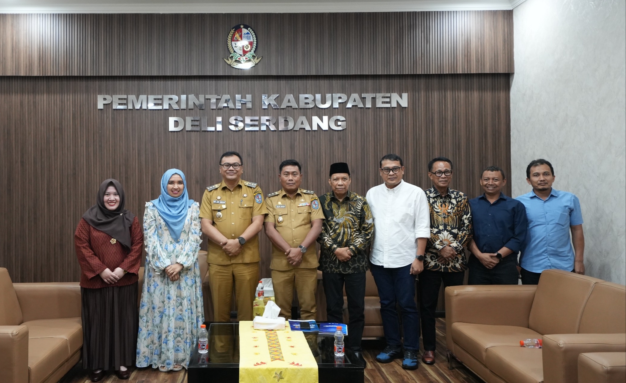 Rektor UMSU, Prof. Dr. Agussani, MAP serta jajaran pimpinan melakukan audiensi dengan Bupati Deliserdang, dr. H. Asri Ludin Tambunan, di Kantor Bupati, Lubuk Pakam, Selasa (7/4).