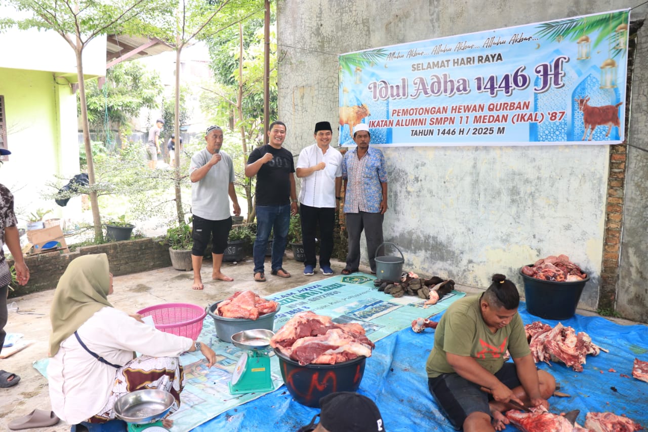 Hewan kurban yang disembelih di momen Hari Raya Idul Adha 1446 itu, kata Aja Syahri yang juga Wakil Ketua PPP Sumatera Utara tersebut merupakan hewan kurban yang berasal dari Alumni di SMP 11 Medan angkatan 87.