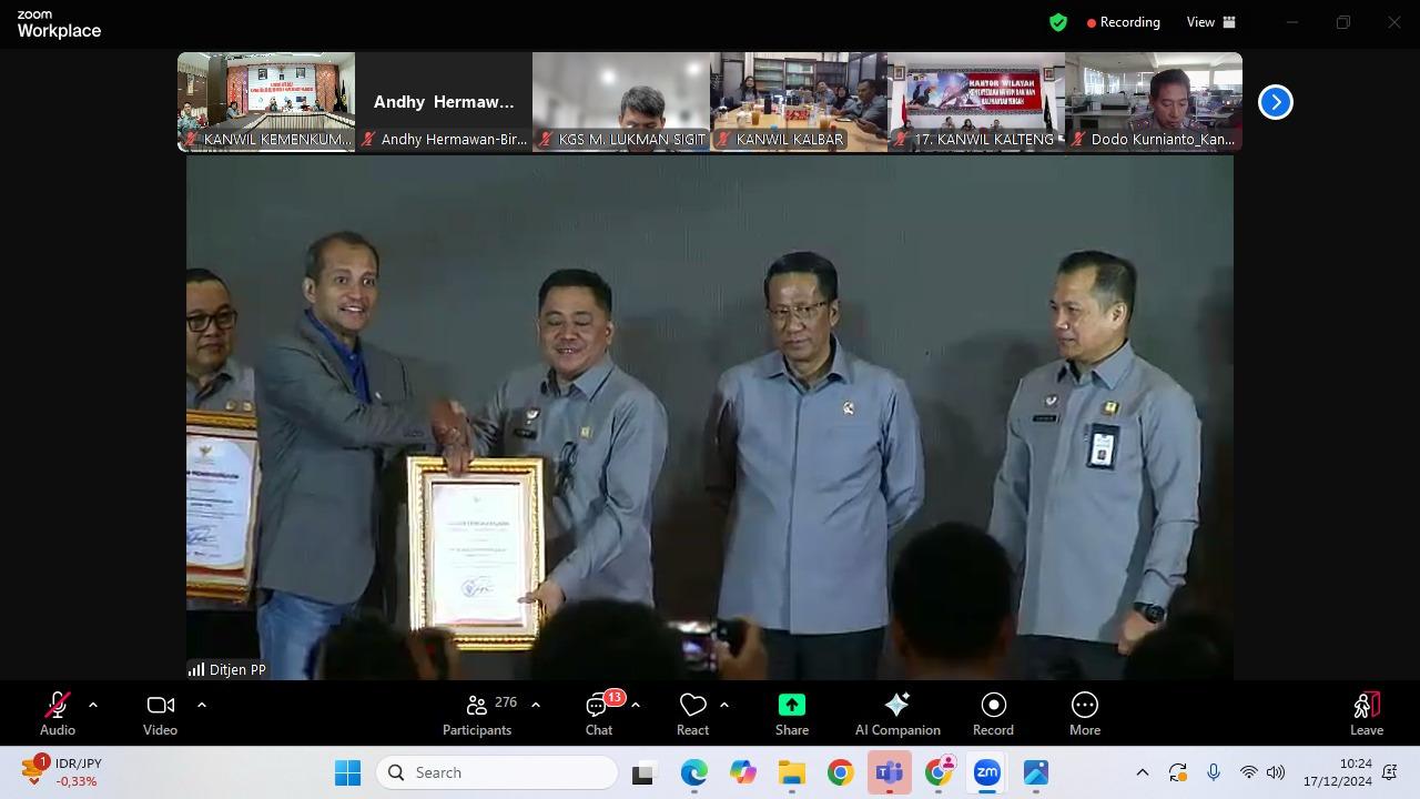 Dalam kegiatan ini, jajaran Divisi Pelayanan Hukum dan HAM Sumut turut hadir secara virtual untuk menyaksikan pencapaian yang membanggakan tersebut. Ferry Ferdiansyah menyampaikan rasa syukur dan terima kasih atas kerja sama solid seluruh tim dalam mewujudkan kinerja terbaik di tahun 2024.