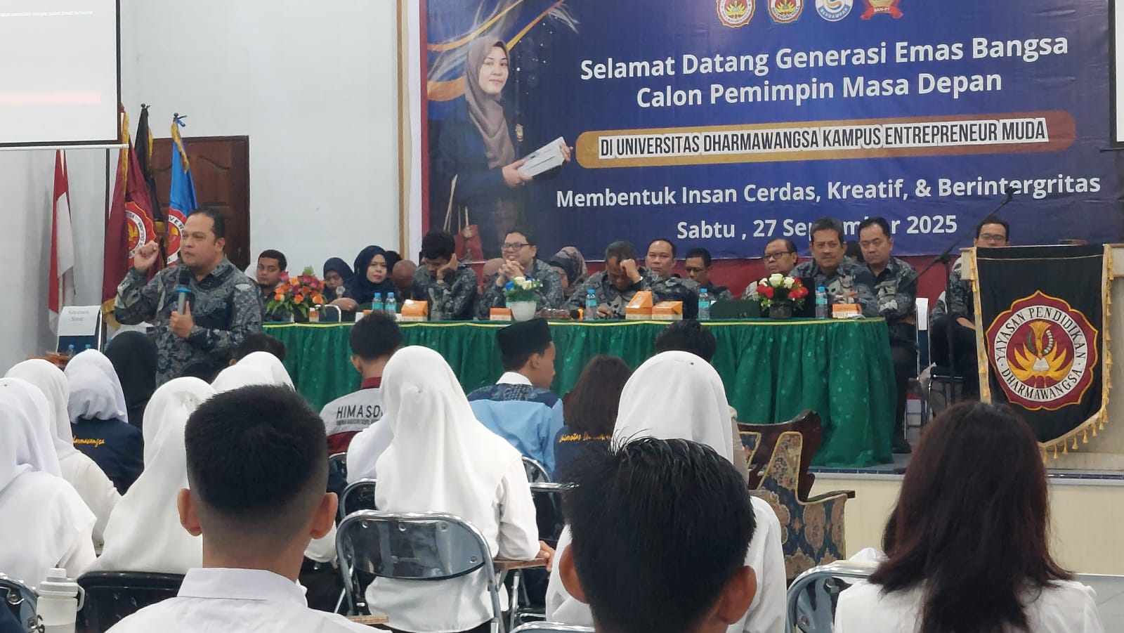 Mewakili pengurus Yayasan Pendidikan Dharmawangsa, Dr. Edi Iskandar turut memberikan motivasi agar mahasiswa tekun belajar dan berinovasi. Bendahara Yayasan ini juga mengadakan kuis interaktif berhadiah uang tunai untuk mengukur pengetahuan mahasiswa tentang Undhar. (ABN/dan)