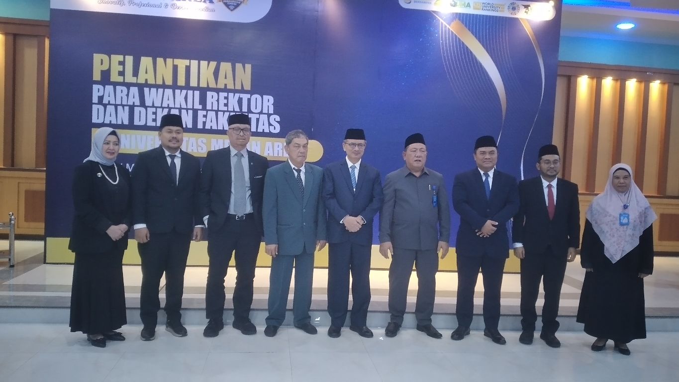 MEDAN – Rektor Universitas Medan Area (UMA) Prof Dadan Ramdan, MEng, MSc, melantik empat wakil rektor periode 2025–2027 dan dua dekan fakultas periode 2023–2025 di Hj Siti Mariani Conference Room, Lantai III Gedung Perpustakaan Kampus I UMA, Jalan Kolam, Medan Estate, Jumat siang (6/11/2025).