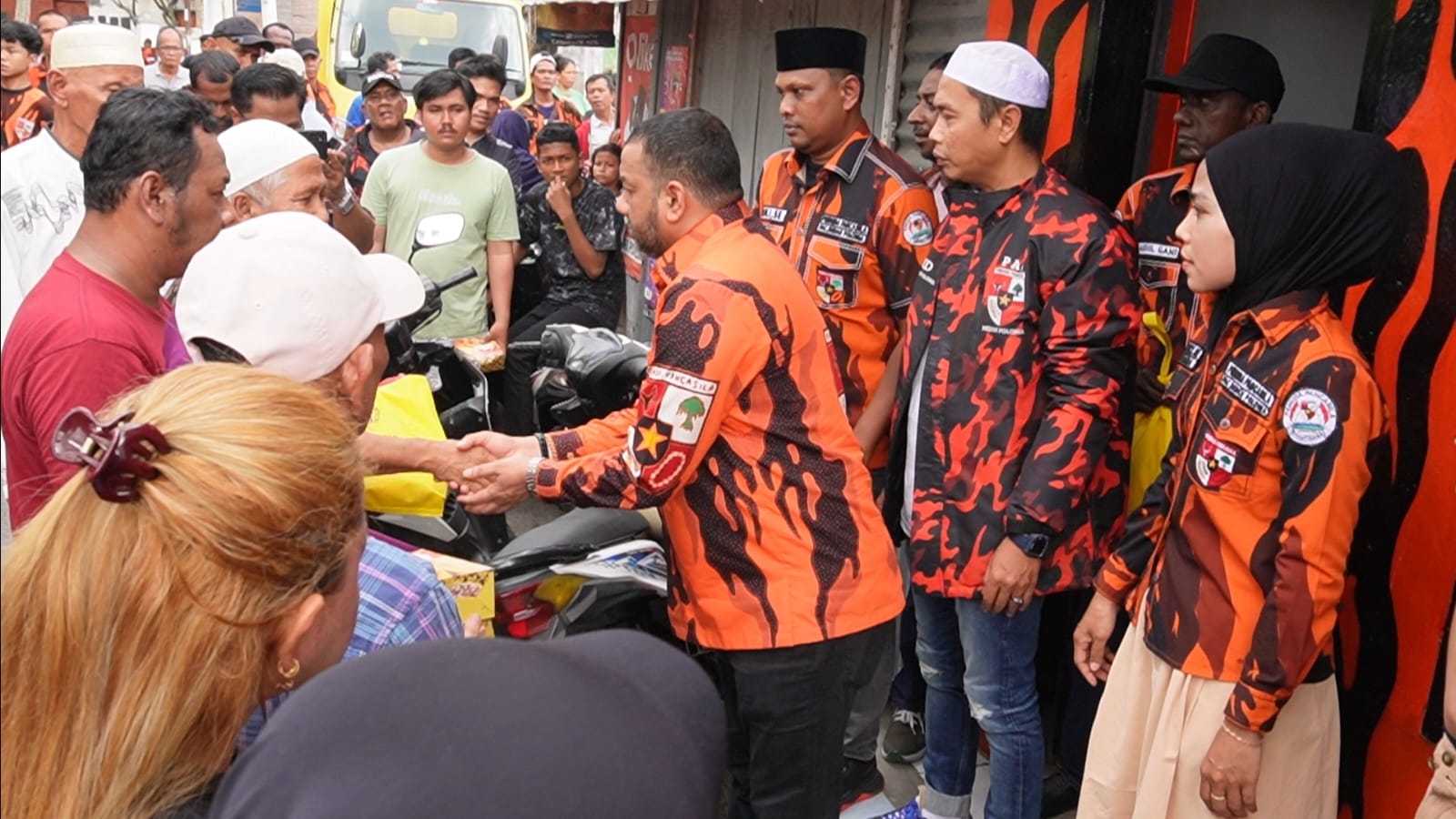 Medan – Ketua Pimpinan Anak Cabang Pemuda Pancasila (PAC-PP) Medan Polonia, Rommy Van Boy, membagikan 1.000 paket Idulfitri kepada kader dan masyarakat di Kecamatan Medan Polonia, Selasa (17/3/2026), menjelang Hari Raya Idulfitri 1447 Hijriah.