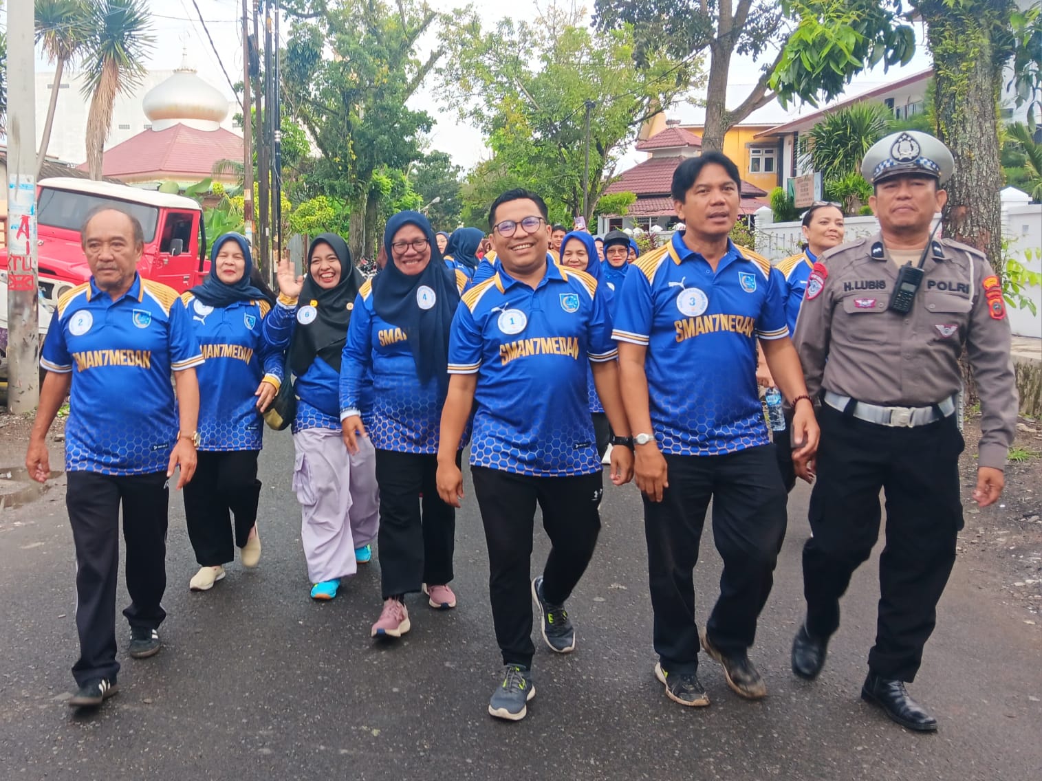 MEDAN – Dalam rangka menyambut Hari Guru Nasional ke-61 Tqhun 2025, Ketua Komite SMA Negeri 7 Medan, Syaiful Syafri, bersama para pengurus komite mengikuti kegiatan jalan sehat bersama jajaran guru, lebih dari seribu siswa, serta anggota Polri dari Polsek Medan Timur. Kegiatan ini dikoordinir oleh Pengurus OSIS SMA Negeri 7 Medan, Jumat pagi (21/11).