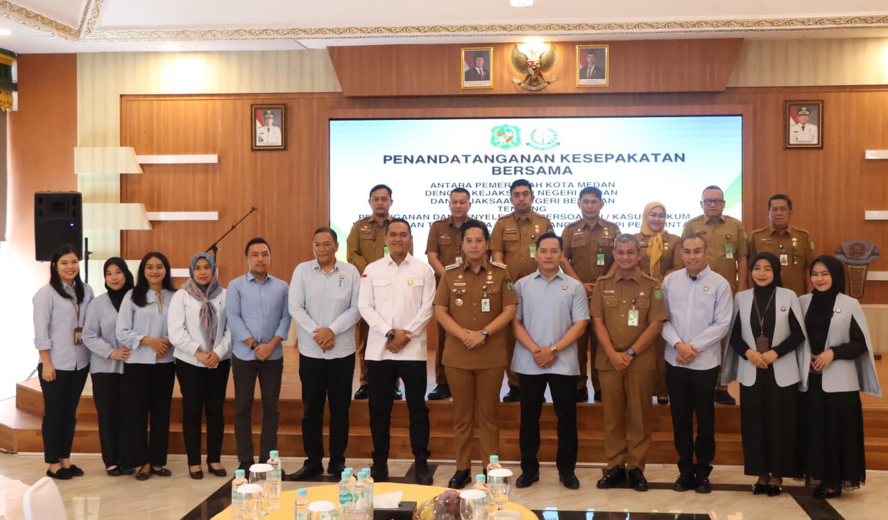 Medan – Pemerintah Kota (Pemkot) Medan memperkuat sinergi pendampingan hukum guna mengawal jalannya pemerintahan dan percepatan pembangunan. Penguatan tersebut ditandai dengan penandatanganan Kesepakatan Bersama (MoU) antara Pemkot Medan dengan Kejaksaan Negeri (Kejari) Medan dan Kejaksaan Negeri Belawan.