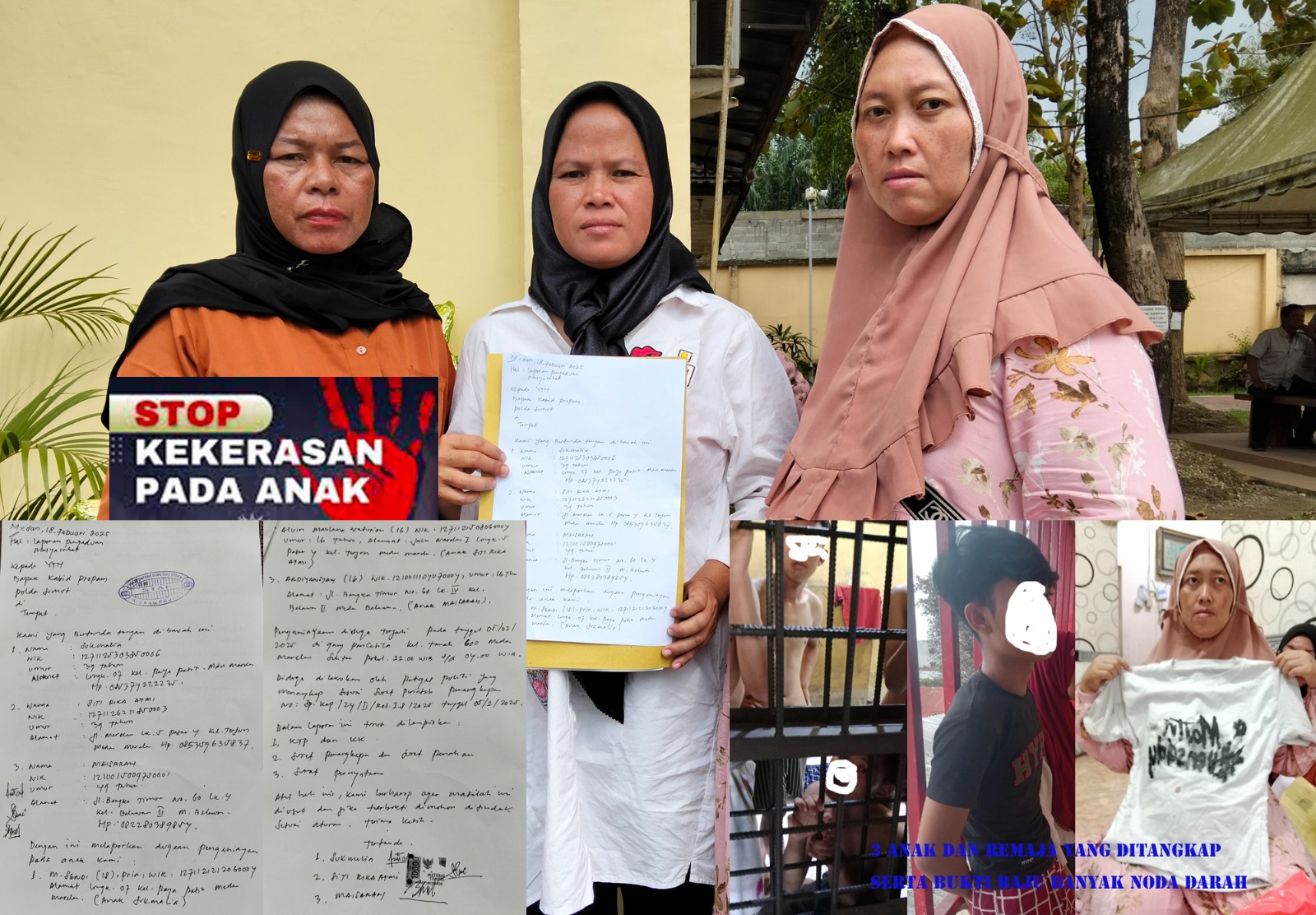 Para pelapor, yakni Sukmalia (39), ibu dari MSL (18), Siti Rika Atmi (39), ibu dari AM (16), dan Maisarah (49), ibu dari Ard (16), menegaskan bahwa ketiga anak mereka tidak berada di lokasi kejadian di Komplek Taman Citra Titipapan pada Jumat, 15 November 2024. Mereka juga mengungkapkan dugaan penyiksaan yang dialami anak-anak mereka setelah ditangkap pada 4 Februari 2025.