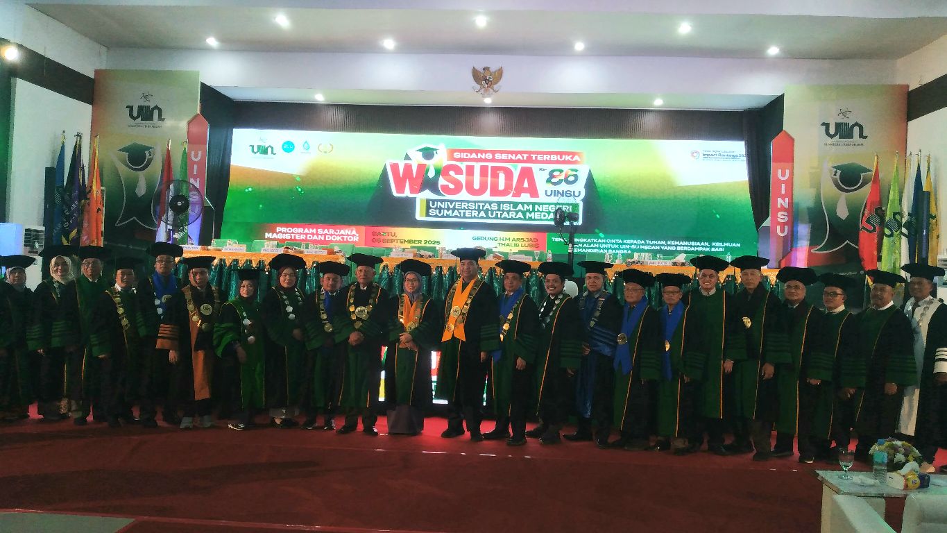 MEDAN – Universitas Islam Negeri Sumatera Utara (UINSU) Medan mewisuda 2.329 lulusan, di Gelanggang Mahasiswa H Arsyad Thalib Lubis, Kampus I Jalan Sutomo/IAIN Medan, Sabtu (6/9/2025). Lulusan yang diwisuda pada wisuda ke-86 ini terdiri dari program sarjana, magister dan doktor.