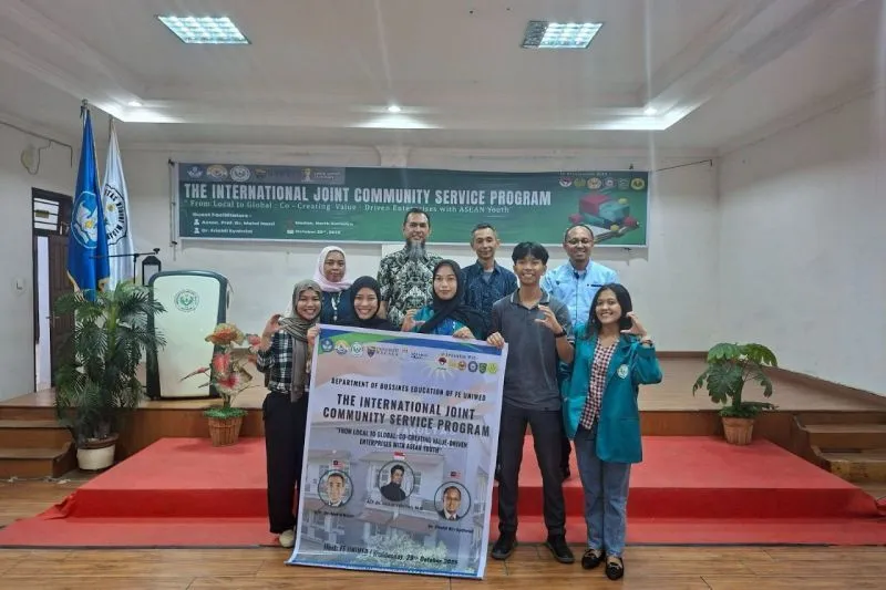 MEDAN – Fakultas Ekonomi Universitas Negeri Medan (Unimed) berkolaborasi dengan sejumlah institusi akademik dan organisasi pengusaha muda dari Indonesia dan Malaysia menggelar kegiatan Pengabdian Kepada Masyarakat (PKM) internasional bertajuk “From Local to Global: Co-Creating Value-Driven Enterprises with ASEAN Youth”, pada Rabu, 29 Oktober 2025, di Aula Fakultas Ekonomi Unimed.