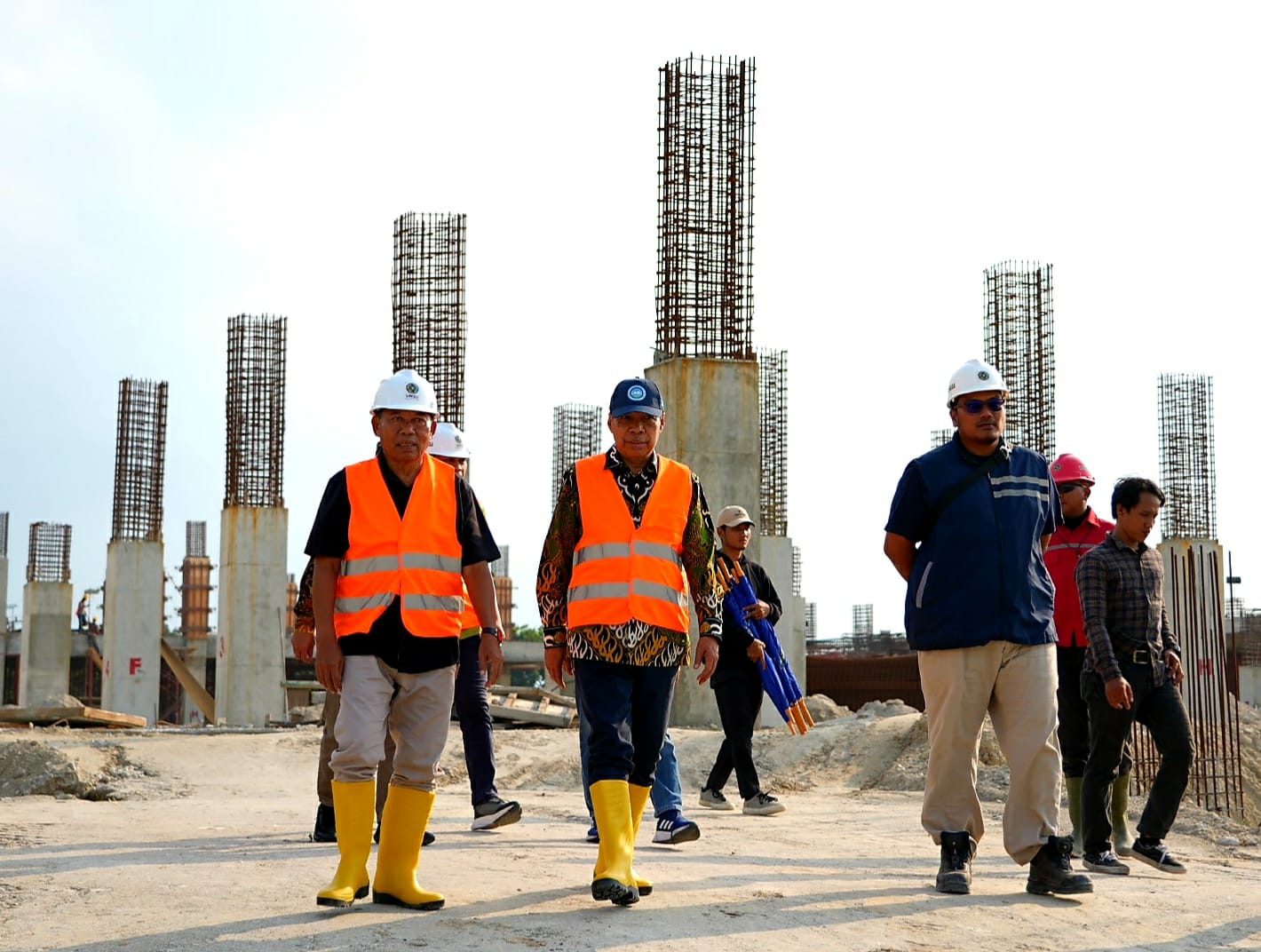 Kunjugan Rektor Unimuda Dr. Rustamadji di area fasilitas Muktamar ke-49 itu merupakan yang ketiga kalinya. Ia tampak sumringah menyaksikan tiang beton sudah meninggi dan lingkaran Auditorium Berkemajuan mudah terlihat.